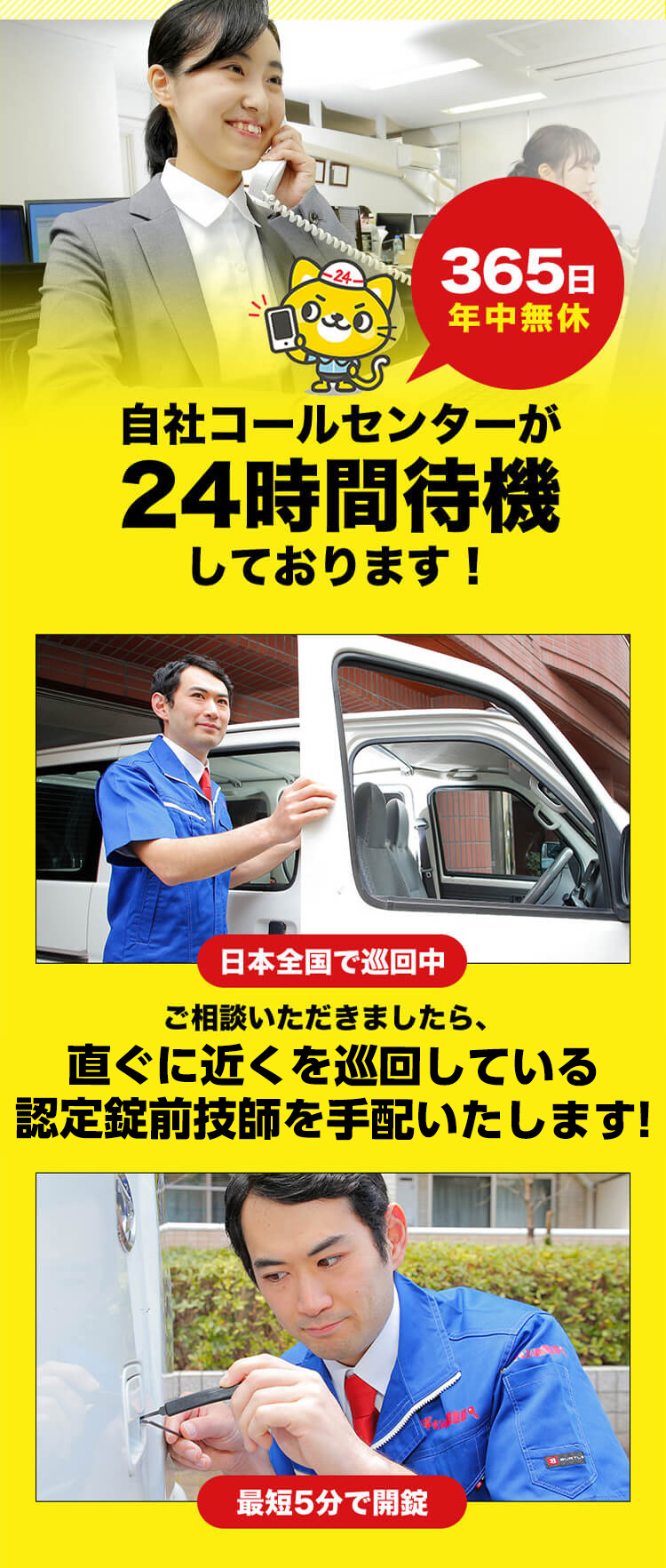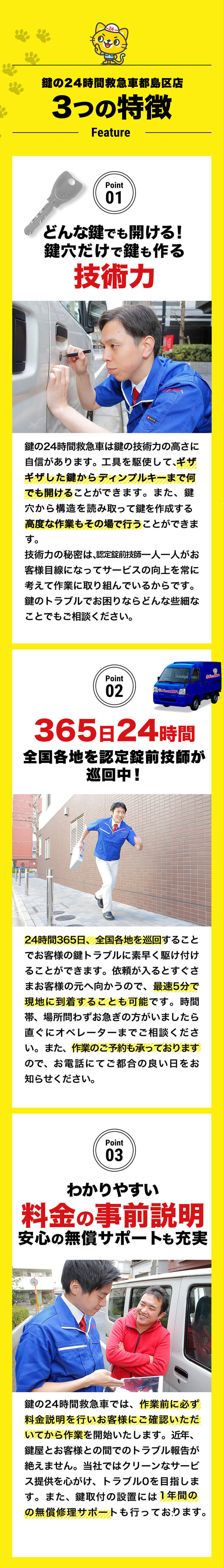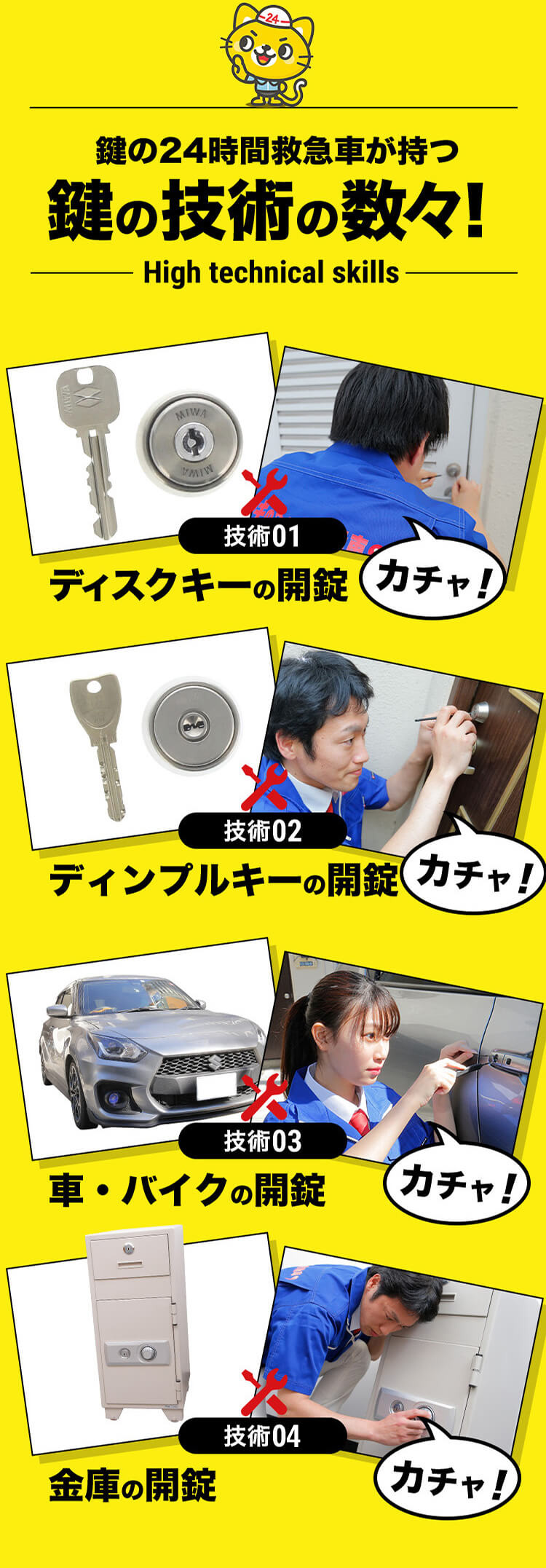 都島区の「カギの24時間救急車」は、スタッフが地元の演劇グループに参加していることから、プレゼンスと状況判断力が養われ、鍵開け、鍵交換、鍵修理の際にもその力を発揮します。都島区で迅速かつ効果的な鍵の対応をお求めの方は、当店がお手伝いします。